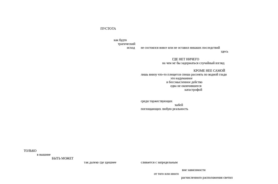 В. Гнедов «Поэма конца», 1913 г. | В. Некрасов «Вот», 1970-е | Г. Айги «Спокойствие гласного», 1982 г.