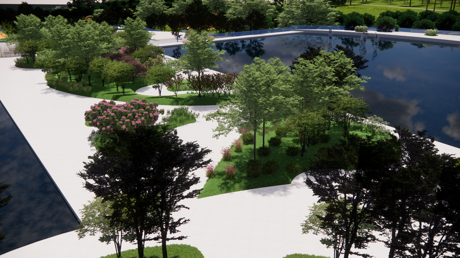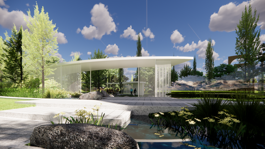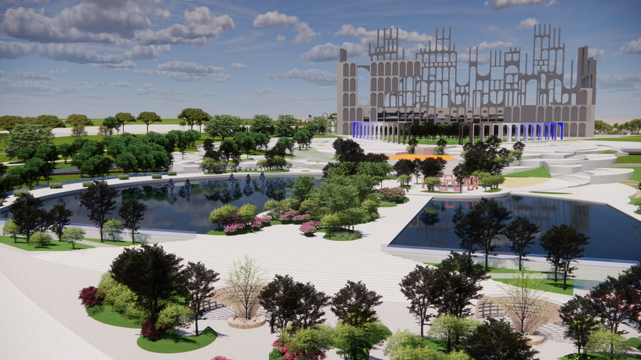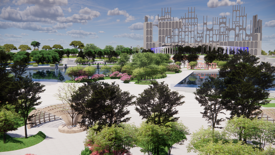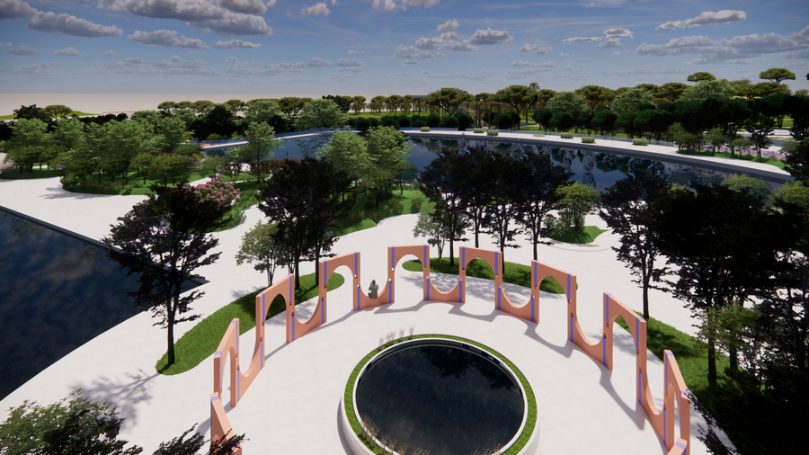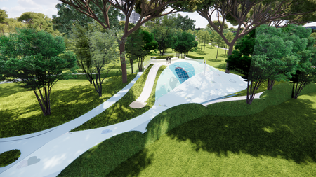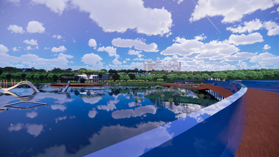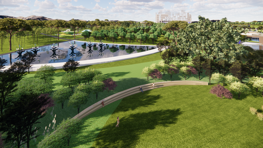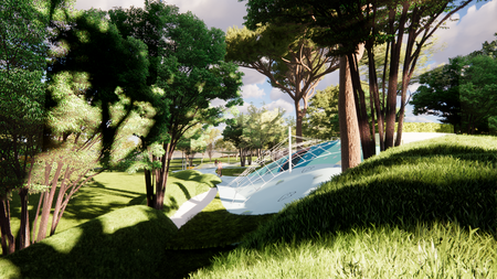 Проект благоустройства парковой территории при выставке «Цвет в конце туннеля» включает в себя проектирование пешеходного моста, ресторана, смотровых площадок, арт-объектов и водных объектов на территории парка.