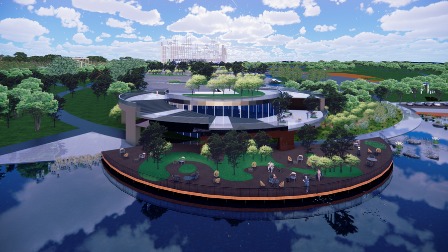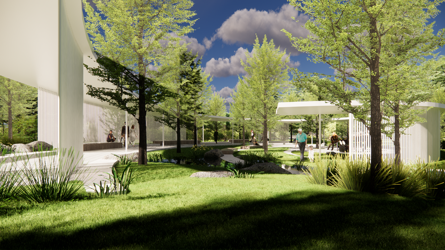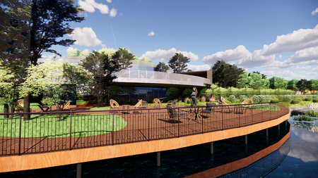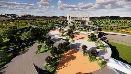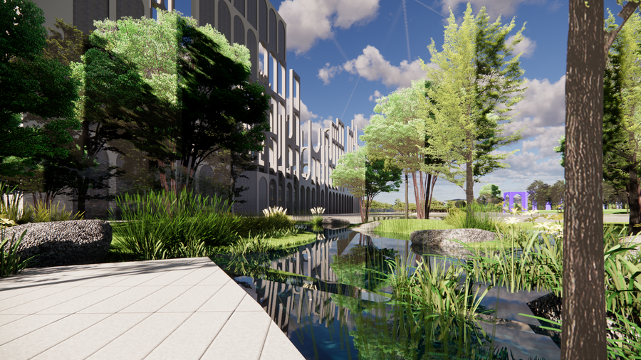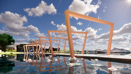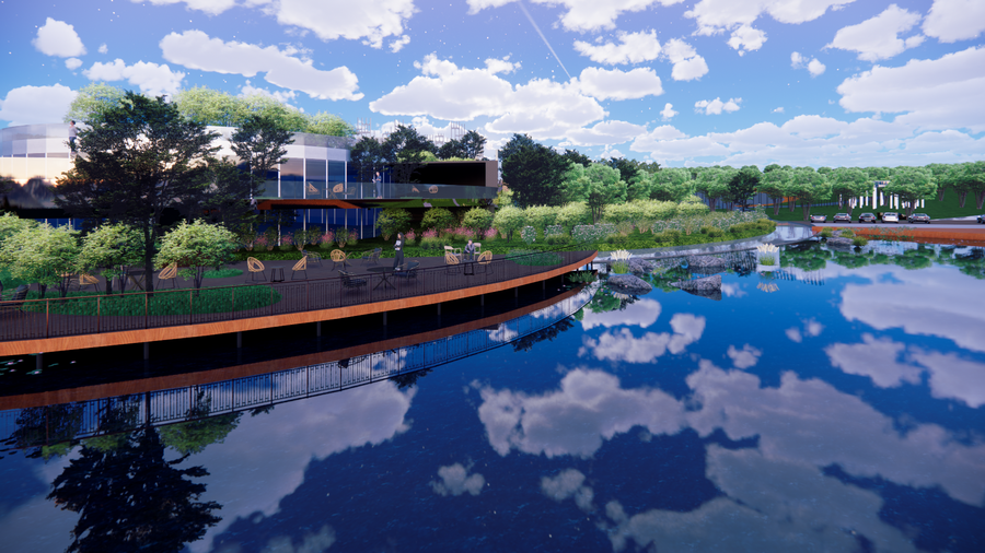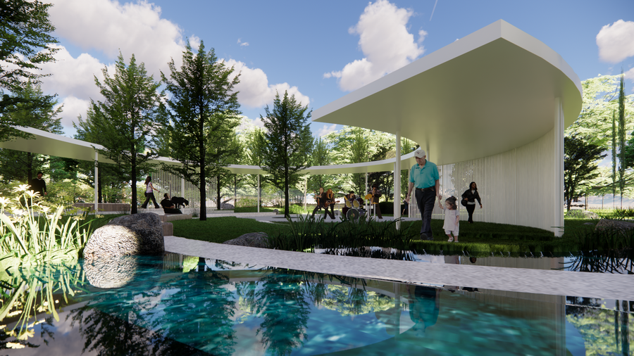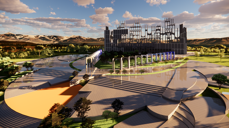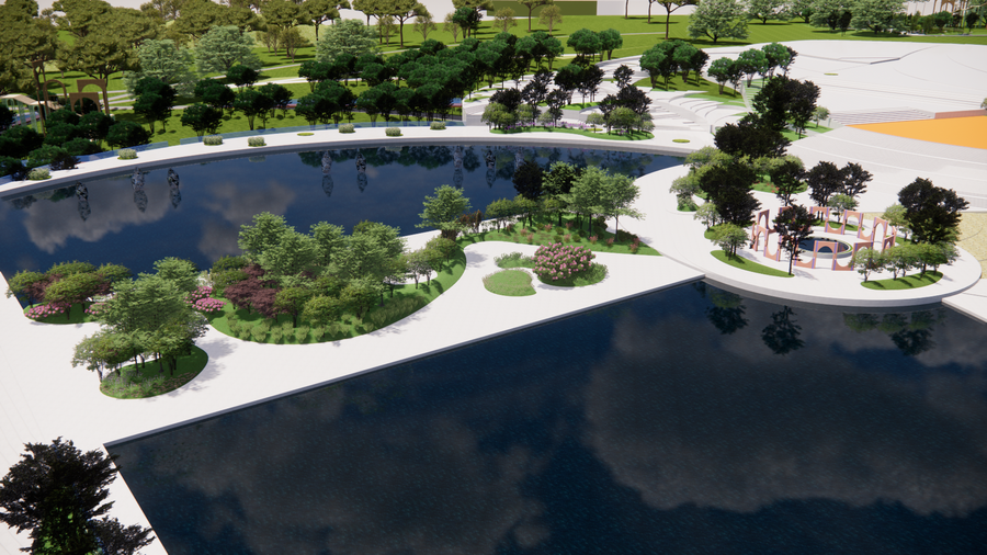 Проект благоустройства парковой территории при выставке «Цвет в конце туннеля» включает в себя проектирование пешеходного моста, ресторана, смотровых площадок, арт-объектов и водных объектов на территории парка.