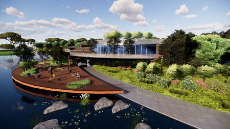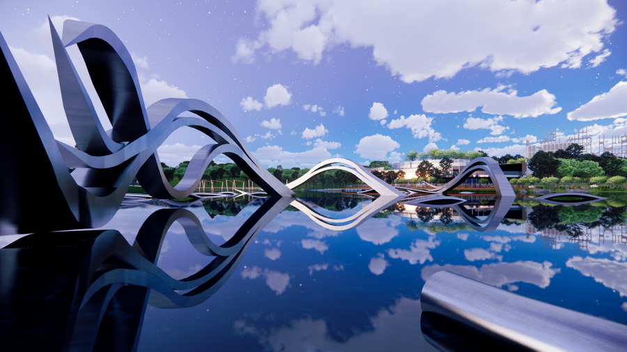 В основе лодочной станции лежат плавные формы, ставшие мостами и самой станцией, около которой расположен арт-объект, созданный из изогнутых бионических форм.