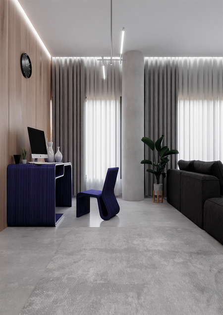 In this module, it was necessary to follow one of three briefs: from a metaphor, from a style or from a brand. I chose the last one. My project is for the Eburet.studio. It is a brand of bright, functional furniture made from recycled polystyrene. And I created a desktop concept called RABOCHIY and a variation of the RABOCHIY eburet stool for them.