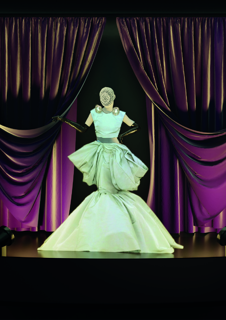 Giambattista Valli — модельер, известный своими экстравагантными и театральными нарядами. Его уникальный стиль часто включает в себя объемные формы, смелые принты и роскошные ткани, которые создают ощущение драмы на подиуме. Театральность — центральная тема в творчестве дизайнера. В своих работах он ссылается на классические сценические постановки и исторические костюмы. Именно поэтому я решила сделать из витрин театральную сцену, дополнив их манекенами в неестественных позах для того, чтобы подчеркнуть вычурность нарядов.