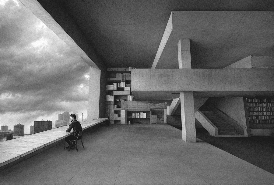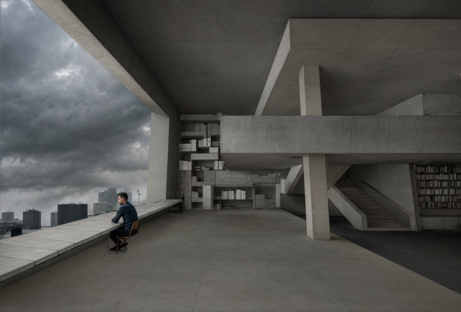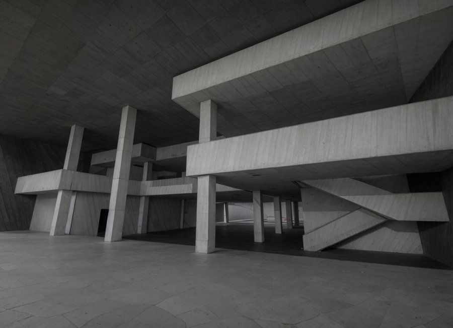 Клуб выполнен в стиле брутализм. В визуализации пространства я хотел добиться реалистичности и фактурности. Добиться этого коллажами и 3D рендерами крайне сложно для большого пространства, поэтому я использовал совокупность этих способов с применением профессионального архивиза на основе нейросети.