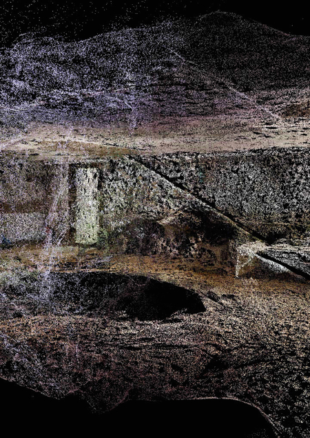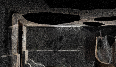 Используя TouchDesigner, была создана визуализация распада галереи «Бомба». Прочное подземное пространство бомбоубежища превращается в зыбкую и хрупкую структуру, где привычные элементы архитектуры трансформируются в абстрактные песочные формы.