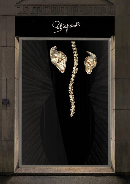 Концепция витрин основывается на ДНК бренда: анатомия человеческого тела. Schiaparelli экспериментирует с формами тела, как будто «деконструируя» и «реконструируя» его через одежду и аксессуары. В этом проявляется идея, что мода не должна просто подчеркивать тело, а может активно изменять его восприятие. В каждой витрине представлены различные части тела человека в знаменитом золоте скиапарелли, раскрывая сюрреалистическую натуру дома.
