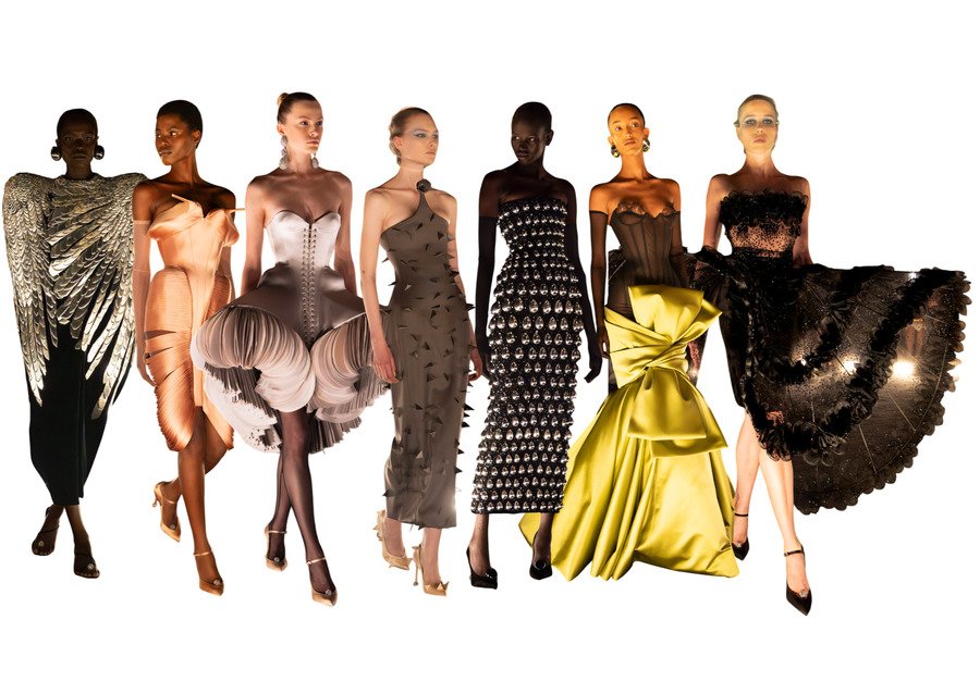— Haute Couture — Сюрреализм — Инновации — Итальянский стиль — Роскошь — Экспериментальность — Уникальность — Искусство — Элегантность — Высокая мода — Золото — Шик — Iconic — Эстетика — Силуэт — Драматизм — Текстуры — Эксцентризм