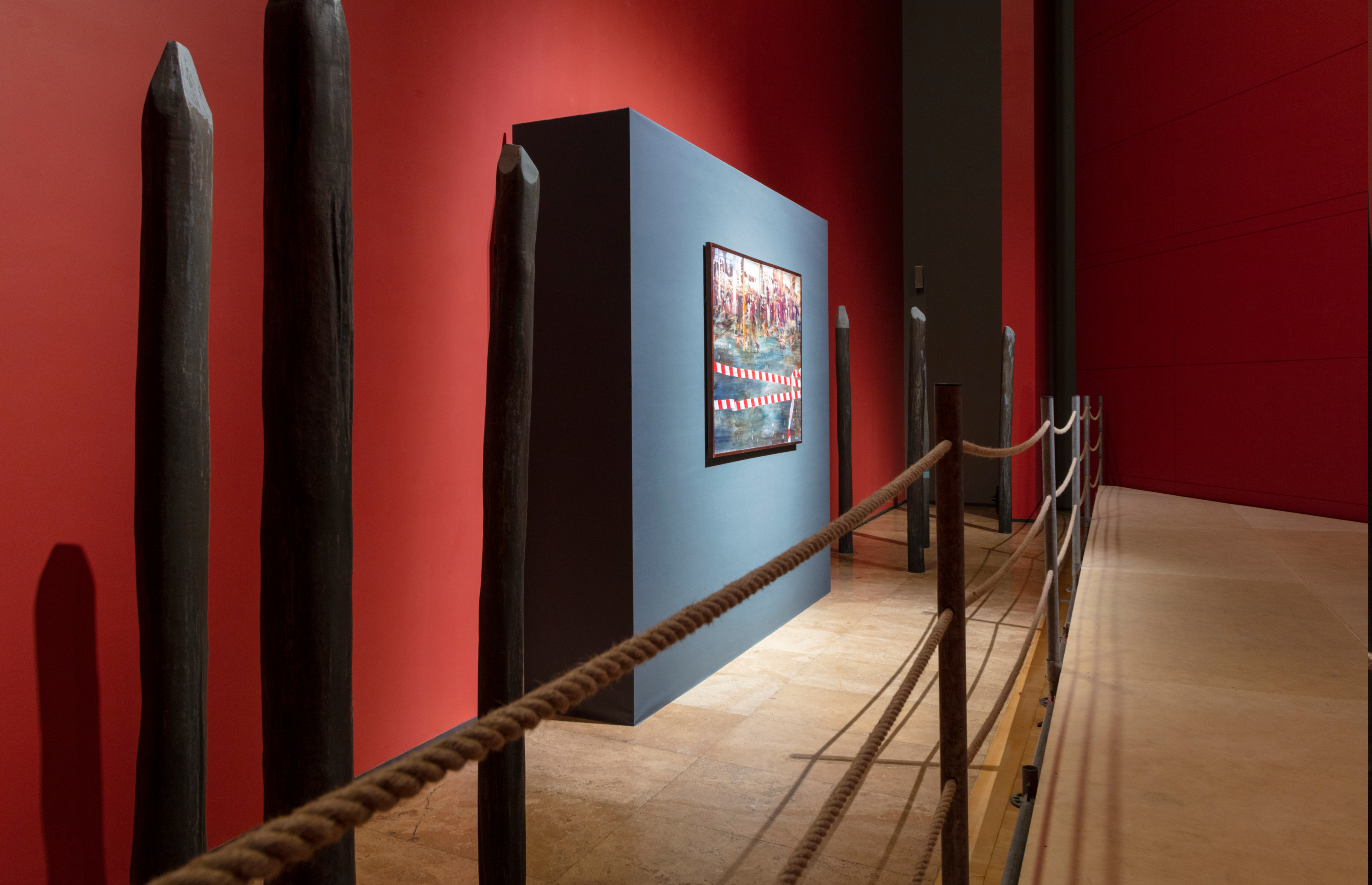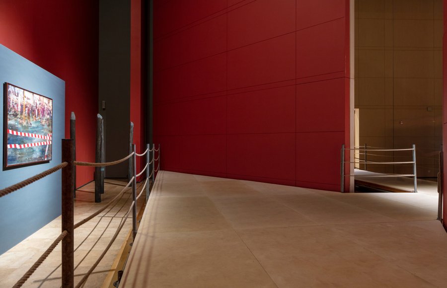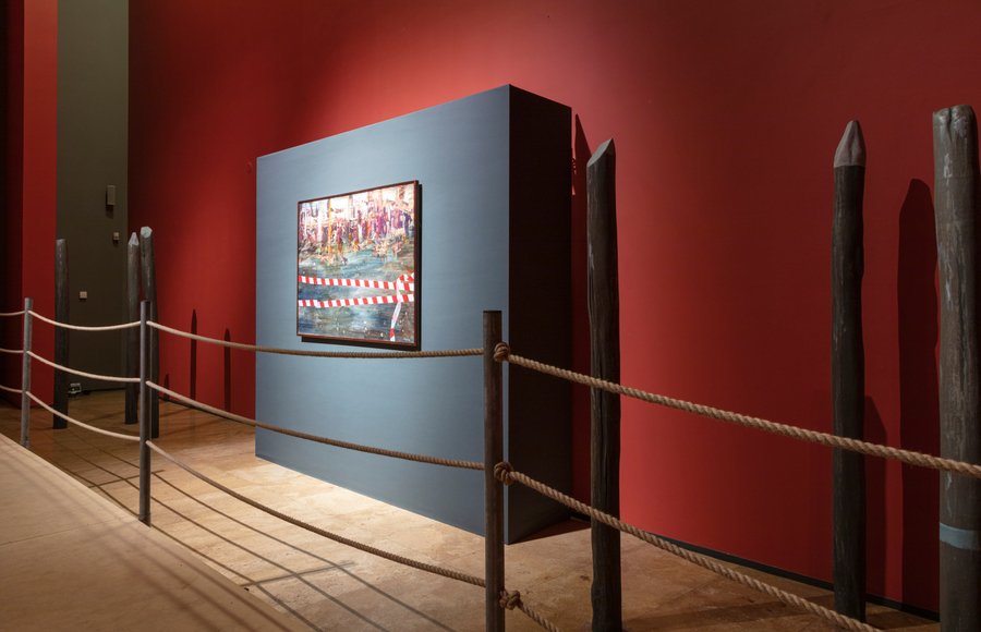 Основной архитектурной задачей было поймать ту эмоцию художника и перенести зрителя из летнего Петербурга в Венецию, вовлечь его в предложенную Анатолием Павловичем игру. Так я появилась аллюзия на мостки, которые выставляются по улицам в момент наводнения, Для усиления эффекта, другом художника были записаны аутентичные звуки городских улиц.