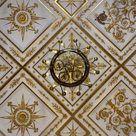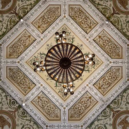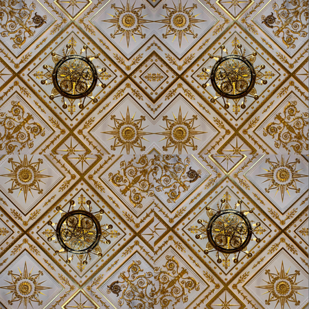 Ниже будут представлены фотографии потолка Эрмитажа и вместе с ними показано, как из данной фотографии складывается целый плиточный квадрат.