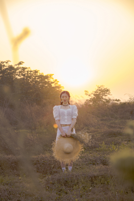 This set of photographic works is themed around the brief escape of urban young workers, capturing the summer time of a girl working in the city searching for healing in the fields. She took off her professional attire and put on a straw hat, facing the sunset, feeling the relaxation brought by nature. This series of works attempts to reveal the spiritual dilemma and self redemption of contemporary young people in work overtime and involution — those exhausted souls squeezed in commuting subways and reinforced concrete will eventually regain a moment of freedom to stretch when they reconnect with the land.