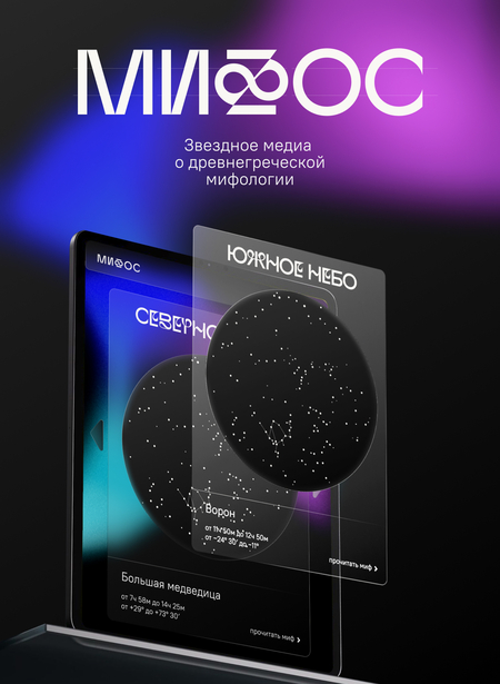 Мифос — медиа для интересующихся космосом и древнегреческой мифологией. Оно проведёт Вас по карте ночного неба.