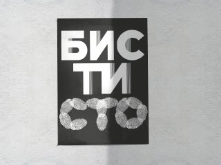 Данный плакат посвящен Дмитрию Бисти. В нем через отпечатки пальцев я старалась передать, что он оставил след в искусстве. Фамилия советского графика выполнена в стилистике его работ с использованием штриха.