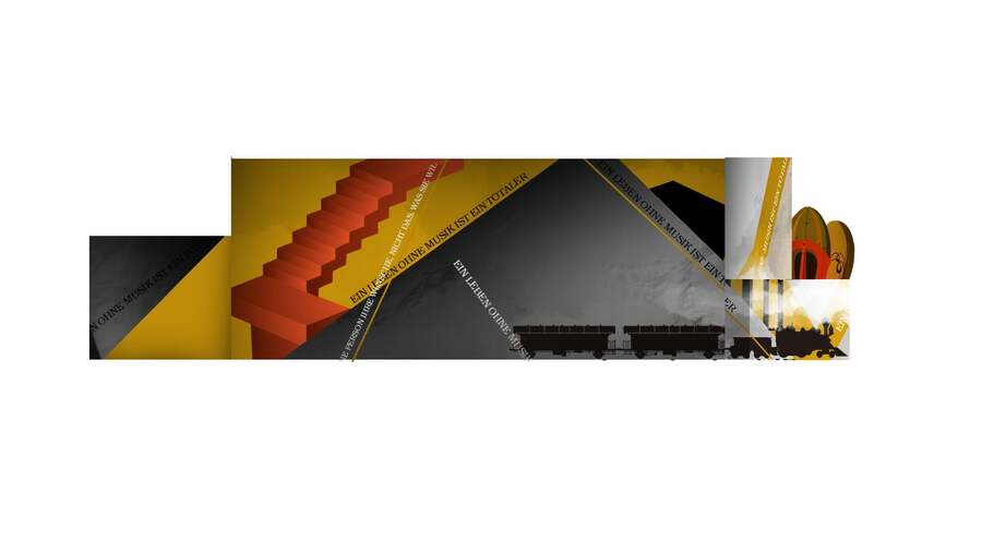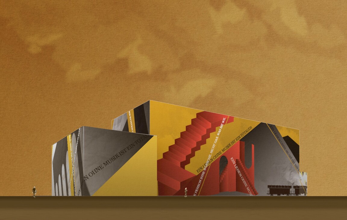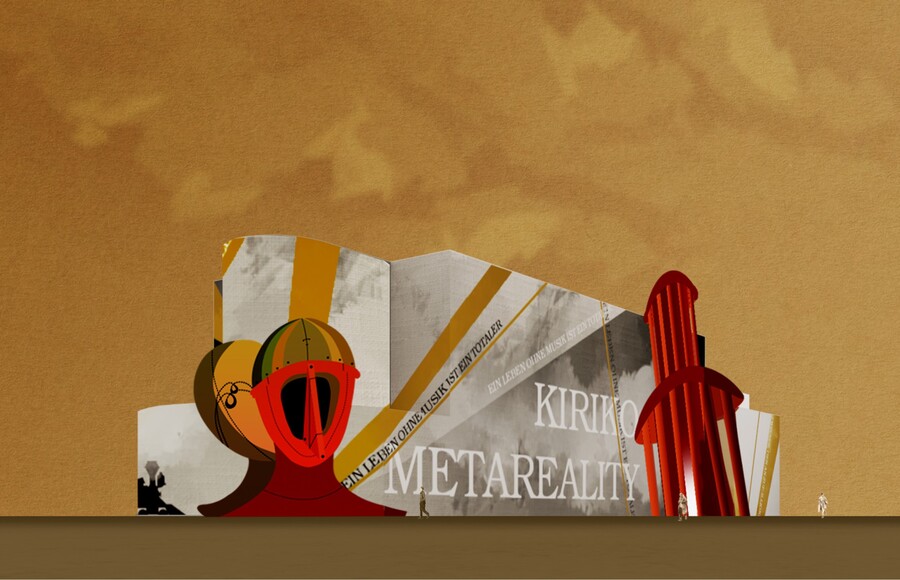 Напротяжении всей своей жизни художник вдохновлялся философией Ницше, которая сильно повлияла на мышление и взгляды на мир у Кирико. Именно эту связь между художником и показывает графический фасад. По всей площади фасада в творчесткиеобразы Джорджо де Кирико «вплетаются» цитаты философа, проникая в сюрреалистический мир.