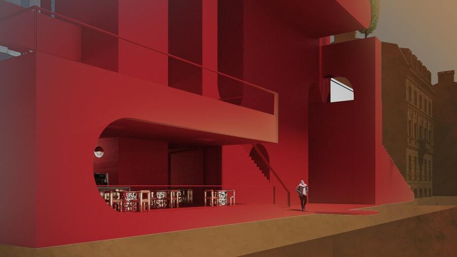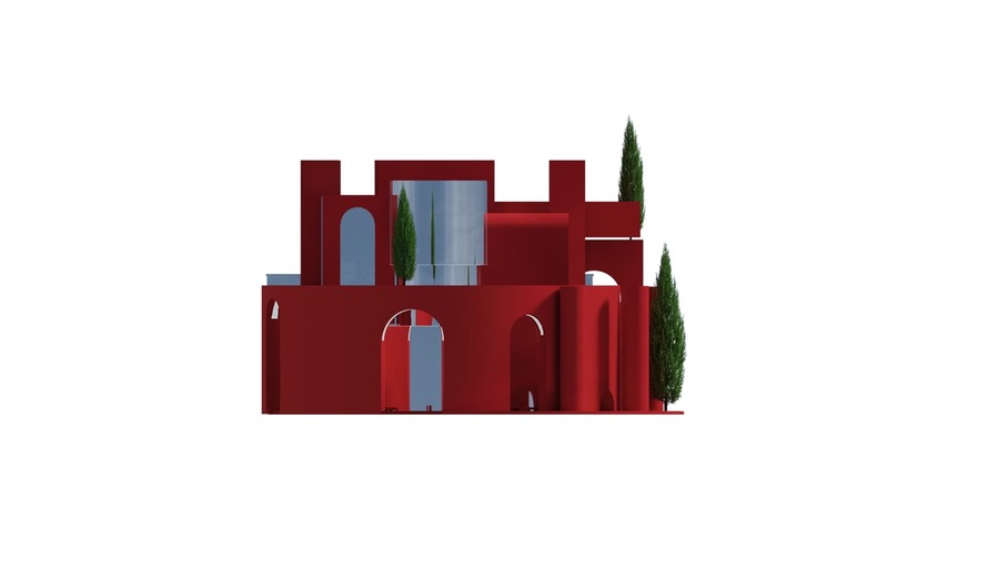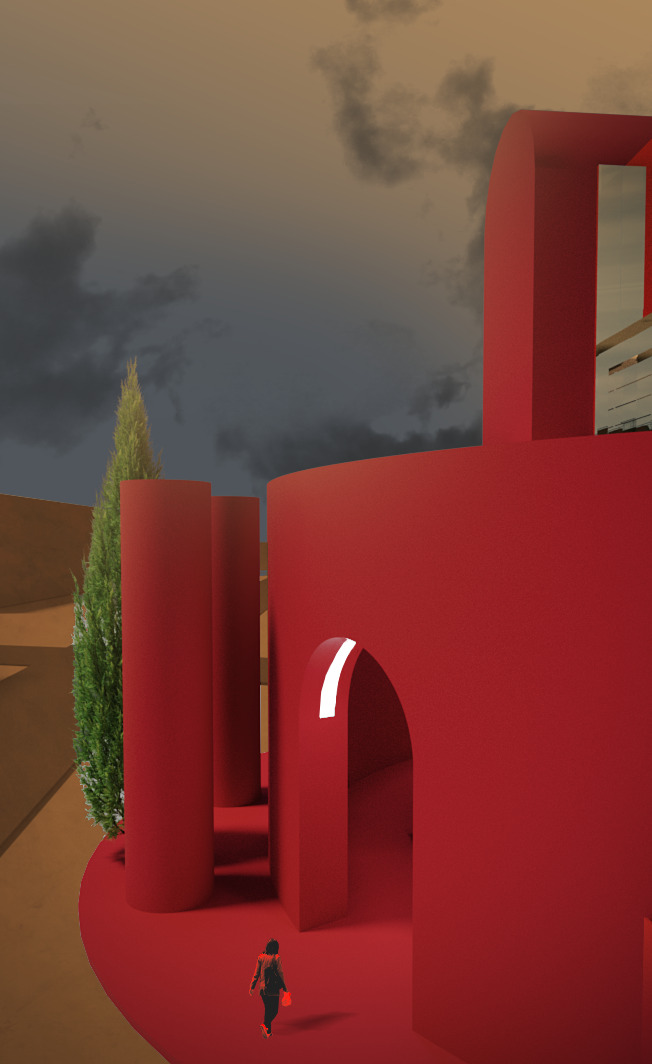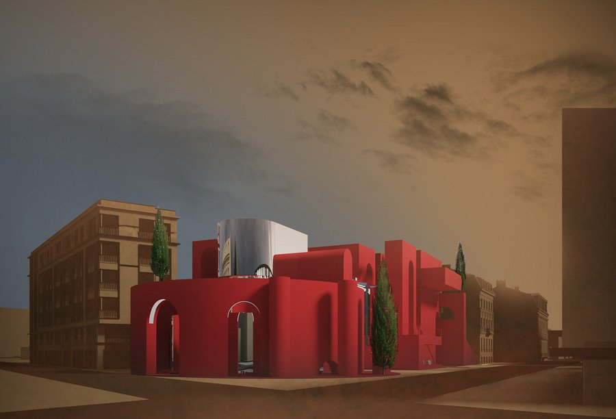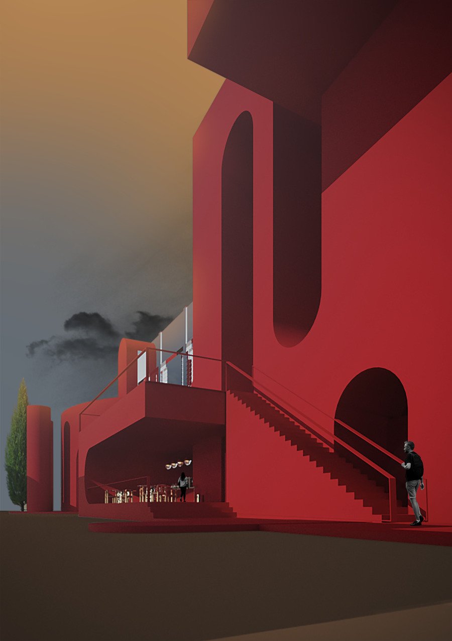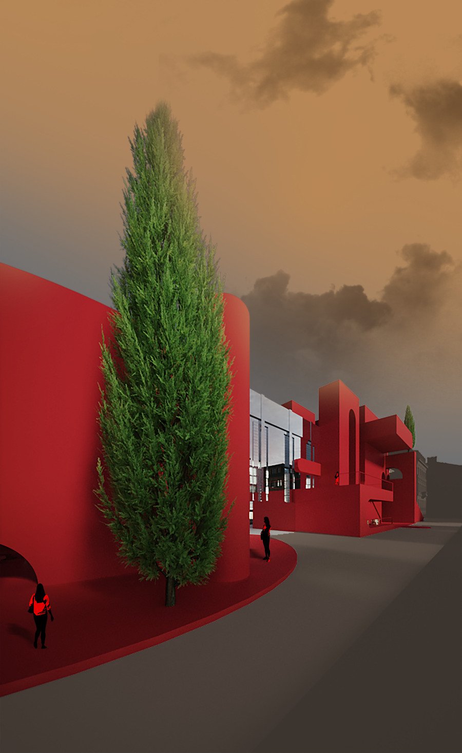 Все художники этого направления стремились «превратить сон в жизнь» и освободить всё что есть в сознании человека. Фасад сделан из зеркального пластика, на который поставлена архитектура напоминающая творчество художника. Кипарисы, возвышающиеся на здании, символ проникновения реальности в сюрреализм. Это помогает создать ощущения проникновения в реальный мир образов из творчества художника.