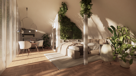 Устанавливается дополнительное декоративное освещение, которое компенсирует отсутствие озеленения.