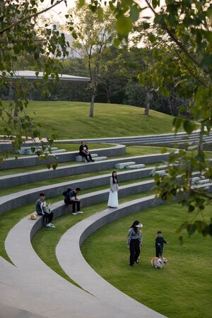 Дизайн парка включает уникальные геометрические формы, создаваемые пересекающимися маршрутами которые составляют основу плана.