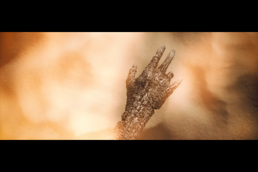 На протяжении первого фильма мы часто видим руки Пола. Испытание Гом Джаббаром заставило его поместить руку в коробку с болью. Он опускает руку в воду после этого теста. Будто бы ищет успокоения в чем-то знакомом и естественном, а также прощается с родной планетой. Это наталкивает на мысли о возвращении жизни с помощью воды (в книге упоминается, что во время испытания Пол ощущал будто бы его рука сгорела до тла).