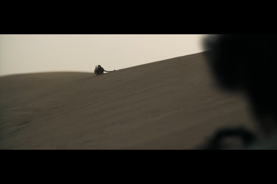 Сцена, где Пол и Джессика выбираются из палатки очень похожа на процесс рождения. Пол выбирается первым и первое, что он видит это маленькая песчаная мышка, которую он ранее видел на голограмме во время изучения планеты. Пока он смотрел на эту мышку в первый раз на него было совершено покушение, сейчас же видя ее вживую он уже новый переродившийся человек. Впоследствии Пол возьмет себе фрименское имя Муад’Диб, на языке фрименов так зовут эту маленькую песчаную мышку. То есть первое что он видит после перерождения это свое новое имя, нового себя.