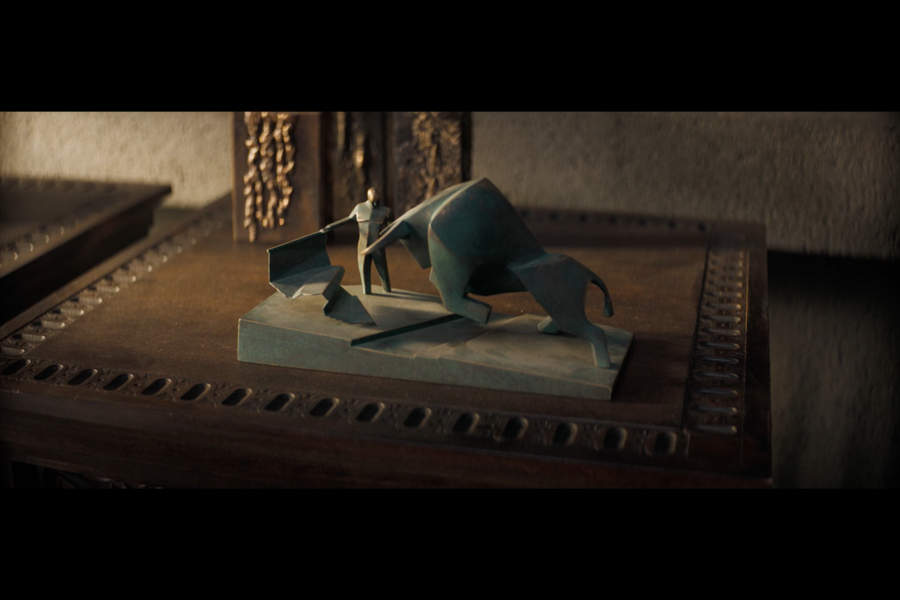 На протяжении первого фильма в ключевые моменты принятия жизненно важных решений, в кадре появляется изображение быка или человека, борющегося с ним. Это изображение деда Пола, который как раз таки и умер во время корриды. Думаю, что это символ борьбы человека с судьбой, естественной неудержимой силой.
