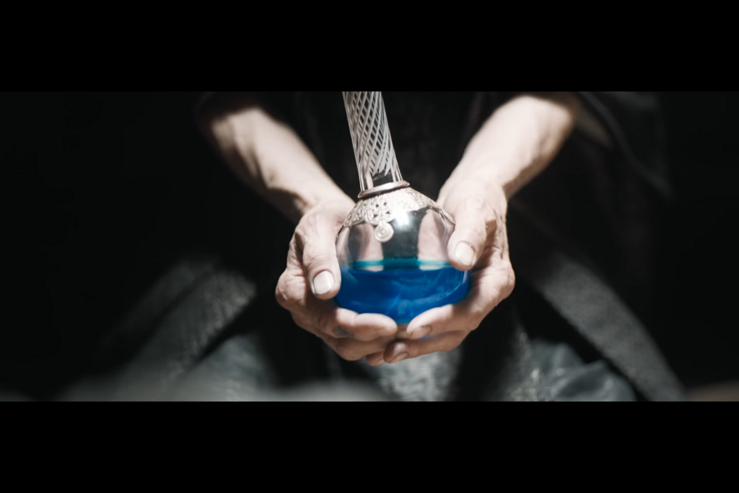 Сцена принятия Воды жизни главная в становлении характера Джессики. Процесс становления Преподобной матерью включает в себя буквальную смерть и возрождение. Очередная трансформация для Джессики, после которой она уже окончательно перестанет быть самой собой. Таинство происходит в пещере. Сначала зрителю показывают вход в нее ¬— зияющую темную дыру на фоне желтого песчаника. Это отсылает к реально существующей древней традиции захоронения в пещерах. Тесное пространство, в котором находятся персонажи, буквально напоминает гроб. Давящие тяжелые стены и зловещая атмосфера усиливают не только ощущение неизбежности события, но и тяжести предстоящей ноши.