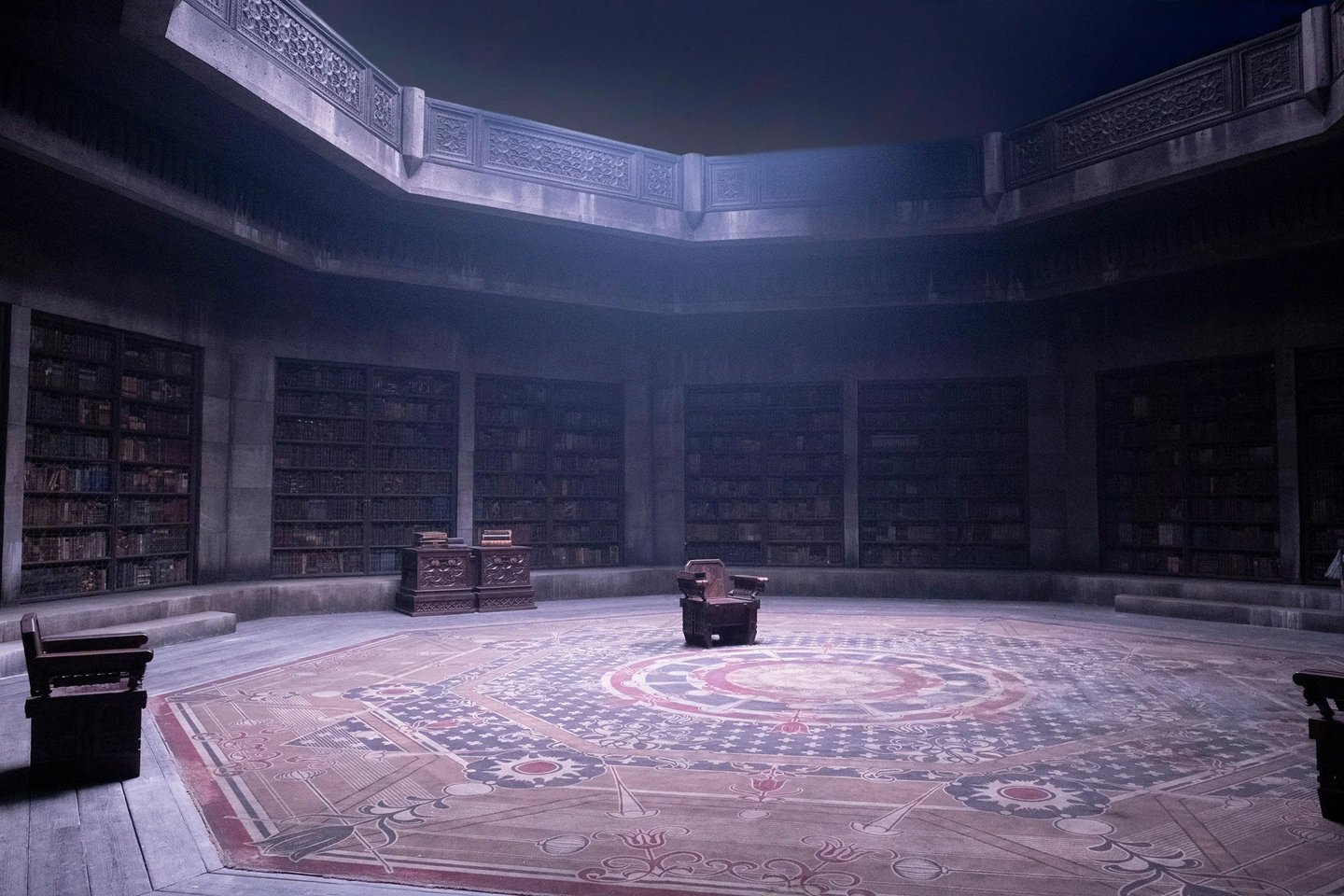 Последний барельеф появляется в сцене разговора Лето и Джессики перед предательством. По сути, это их последний самый важный разговор. Этот барельеф очень технологичный и нагруженный по своей композиции. Думаю, это отражает не только мыслительный процесс Лето, весь стресс под которым он находится и количество решений, которые ему приходится принимать, но и объем интриг окружающий дом Атрейдесов.