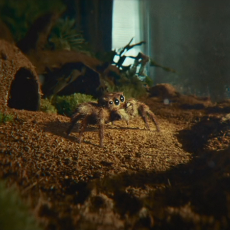 Паучок Сэм представлен не просто питомцем, а настоящим персонажем с человеческими качествами. Он выражает эмоции — от удивления до влюбленности — через движения и взаимодействие с окружающим миром. Этот приём — сделать животное героем — часто используется в рекламе, потому что он позволяет обойти стереотипы о людях и показать универсальные чувства. Паучок, несмотря на свою природу, вызывает симпатию и разрушает страх перед пауками у зрителя. Такой нестандартный подход добавляет оригинальности.