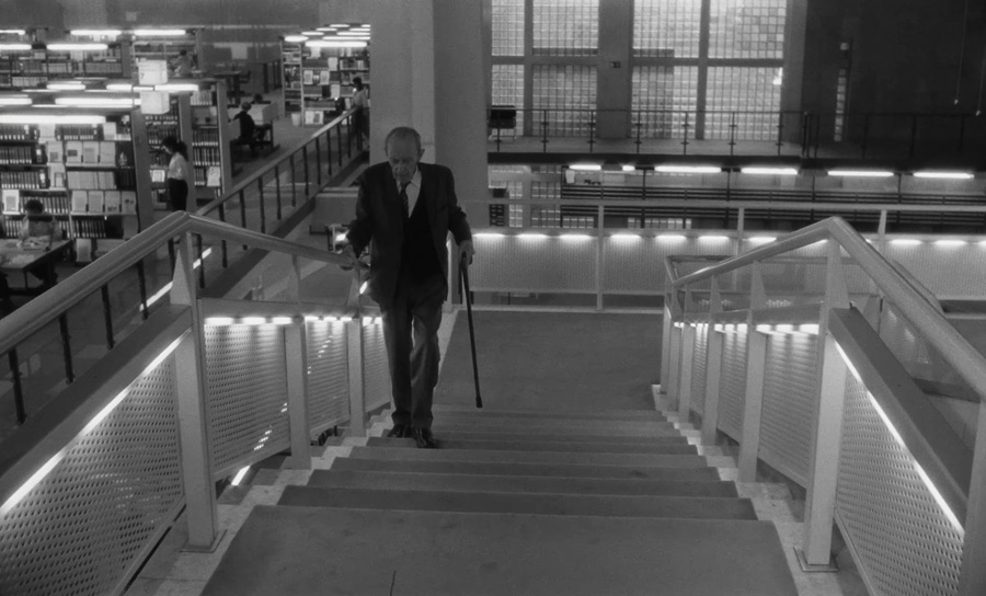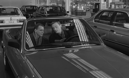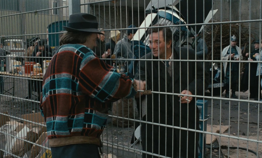 В одной из последних сцен мы видим сочетание цветного — человеческого мира, и черно-белого — в образе ангела Кассиэля. Он также продолжает следить за жизнью своего друга, оставаясь невидимым наблюдателем.