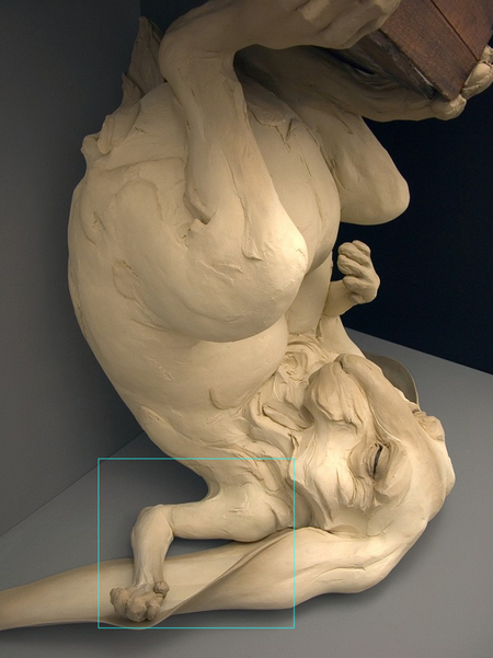 В работе «Неотмщённая» внимание обратить стоит на исполнение нижних конечностей. Икроножные мышцы, строение колена и бёдерные мышечные группы полностью повторяют человеческие.