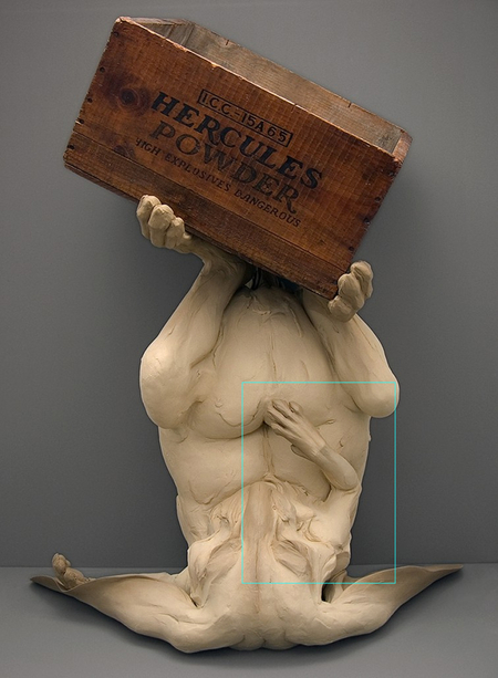 Работа «Золотой Дурак» в свою очередь демонстрирует антропоморфное исполнение верхних конечностей. Обращаем внимание на кисти, предплечья и дельтовидные мышцы плеча персонажа.