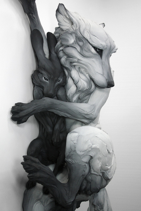 «Я хочу разобраться в этих неудобных, неловких границах между животным и человеком. Запутавшись в своей внутренней и внешней борьбе, фигуры выражают разочарование по поводу человеческой склонности к жестокости и непониманию. В их жестах и выражениях заключено что-то сознательное и знающее.» [1]