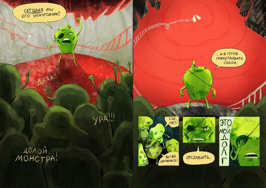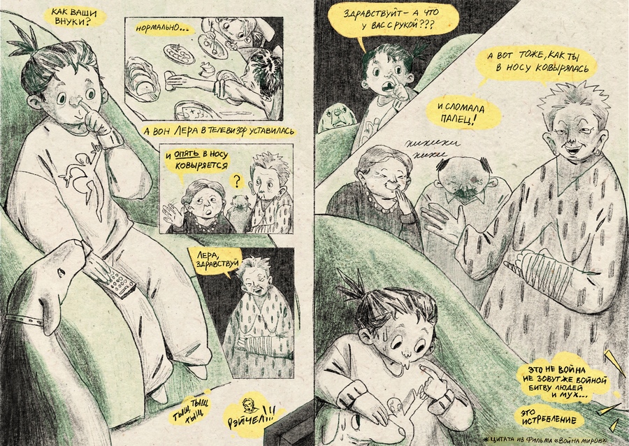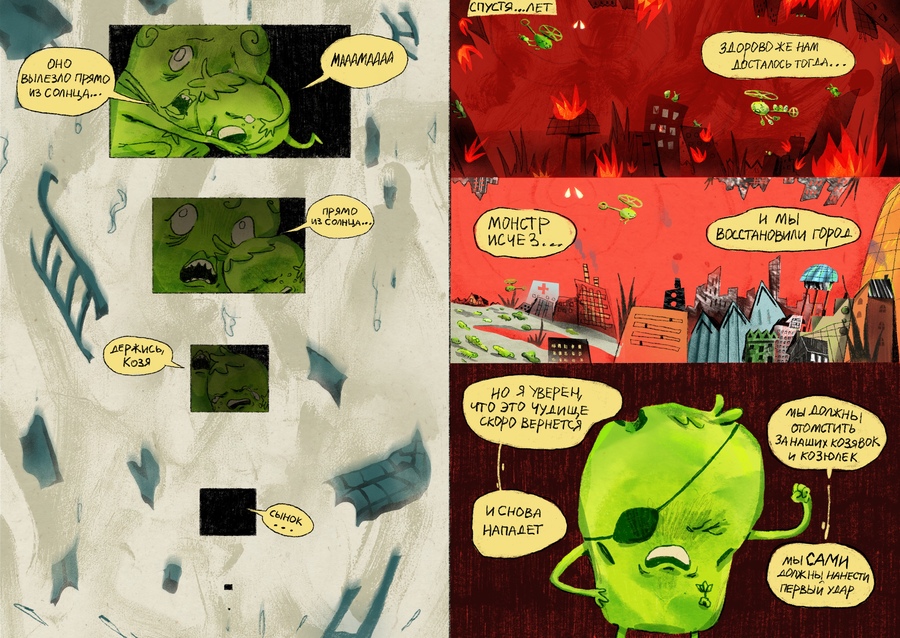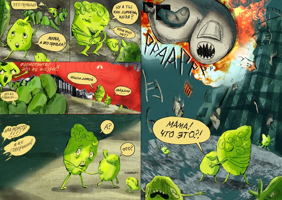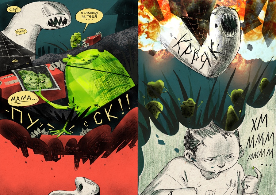 Комикс про козявки получился не только забавной историей о маленьких жителях носа (и обо мне в детстве), но и отражением тревожных событий мира, где хочется верить в победу добра.