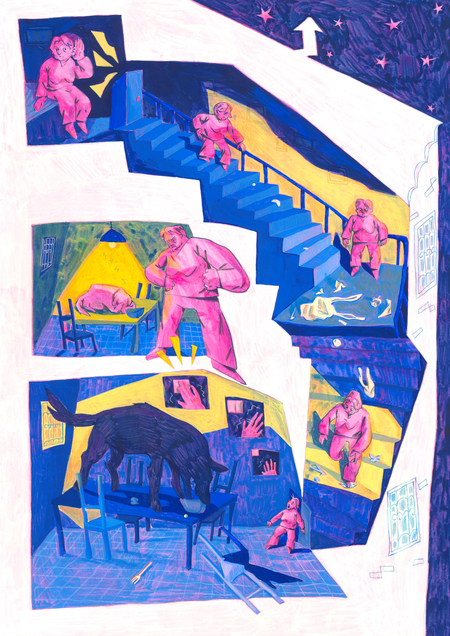 Моя художественная практика вырастает из личного опыта и внутреннего мира. Я обращаюсь к собственным воспоминаниям и чувствам, превращая их в иллюстрации и вымышленные истории. Через этот процесс мне важно не только зафиксировать эмоции, но и переосмыслить их, то есть найти в них светлые моменты, которые можно показать зрителю.