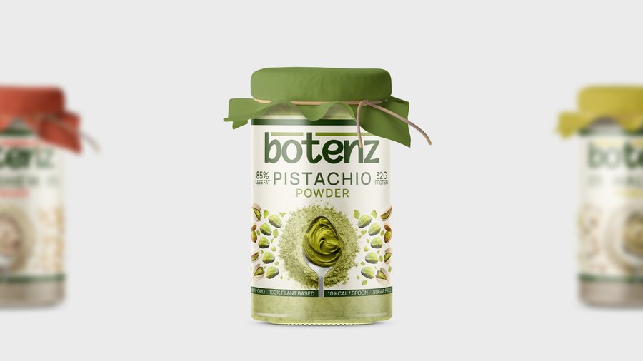 Botenz — это стартап из Израиля, предлагающий порошки из ореховых паст, включая арахисовую, миндальную, кешью, фисташковую и кунжутную. Порошки изготавливаются с выжиманием лишнего жира, что позволяет создать полезную и питательную пасту, легко смешиваемую с водой или молоком. Идея бренда — делаем инновационный продукт с натуральным происхождением.