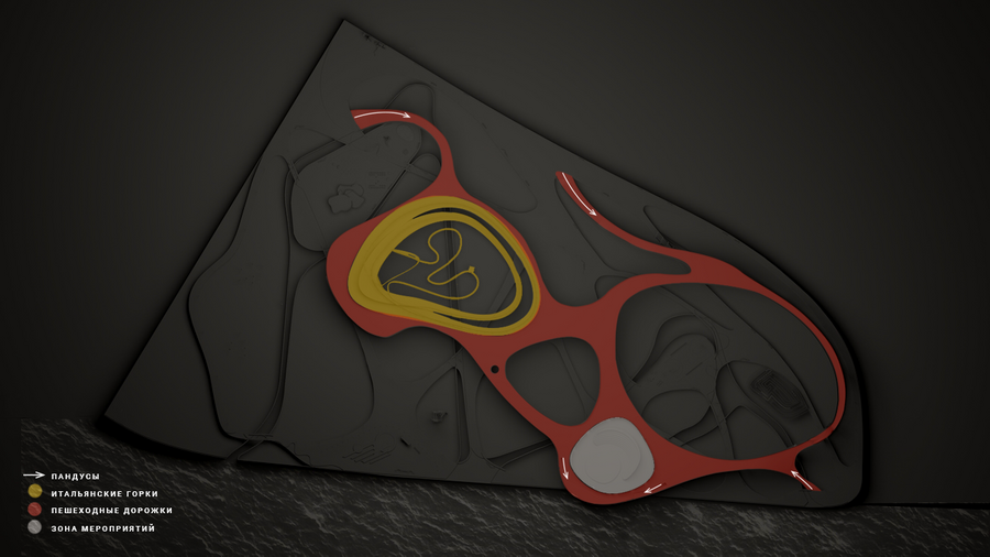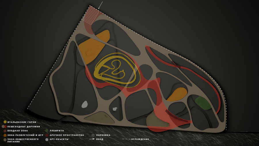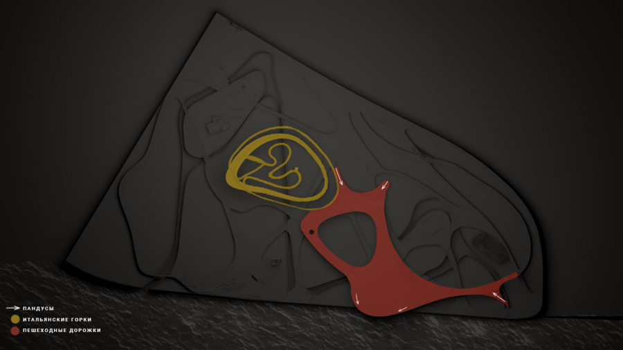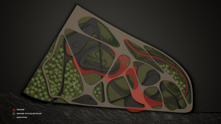 Использовав технику, которую используют психологи, дабы разбирать психологические проблемы, я смогла нарисовать — достать нейролинии из своего подсознания. Именно эти линии легли в планировку парка.