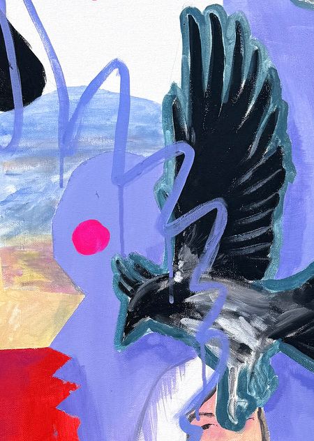 «красный фломастер, голубая гусеница и две вороны», 130×180 мм