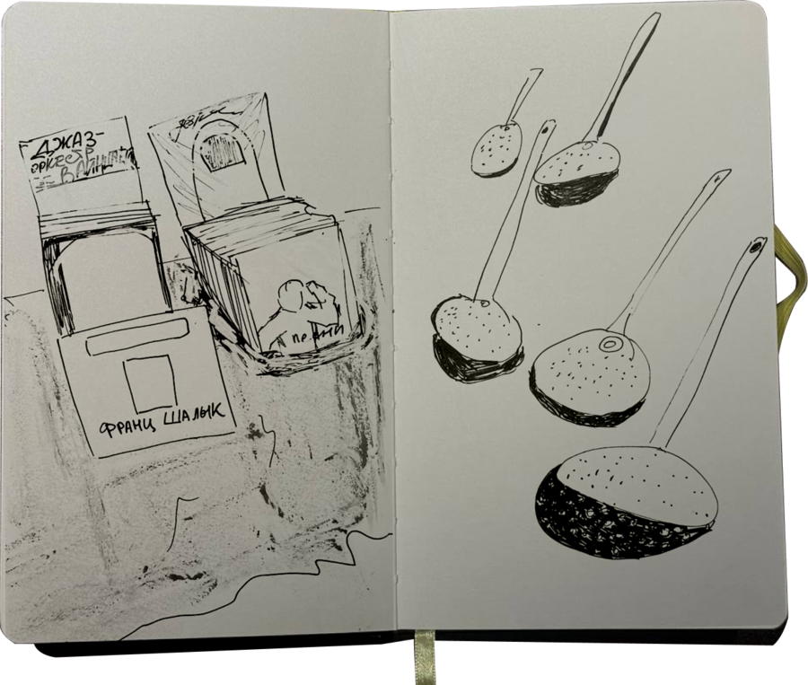 «блохины вещи» — скетчбук-наблюдение за коллекциями вещей незнакомых людей на блошиных рынках.