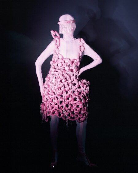 Гастон Лашез — американский скульптор французского происхождения. Его личный стиль сформировался в первом десятилетии XX века, после встречи с будущей женой и музой — Изабель. Под ее влиянием сформировалась его главная тема — женщина как источник силы и энергии. При этом сама Изабель была далека от стандартов красоты эпохи ар-деко: вместо прямого силуэта преувеличенно выразительные формы, с любовью запечатлённые скульптором. Будет ли тело источником гордости и уверенности или начнет сковывать и тянуть вниз, зависит от самого человека. В основе моей концепции лежит метафора цепи — с одной стороны, тяжесть, скованность, а с другой –кольчуга и уверенность.