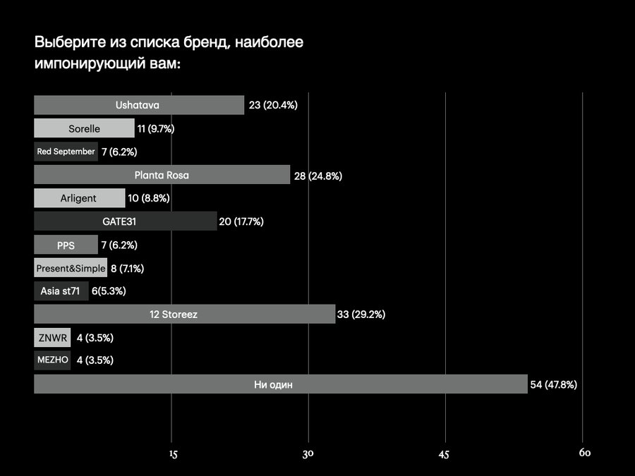 Для нашего исследования мы выбрали 12 российских брендов, представленных в универмаге «Цветной».