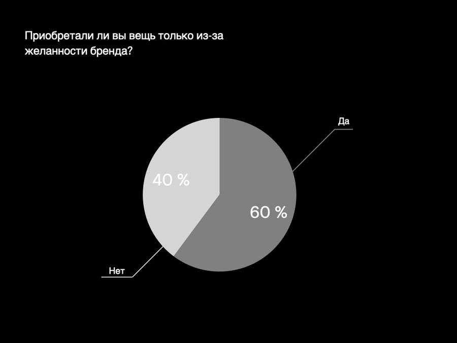 Мы провели опрос среди 113 человек, чтобы выяснить, как фактор желанности бренда влияет на его продажи. Результаты которого помогают понять, что именно заставляет людей выбирать не просто продукт, а бренд с определённой эмоциональной ценностью, и как уровень его медийности и узнаваемости напрямую связан с коммерческим успехом.