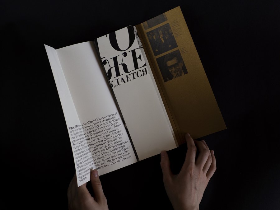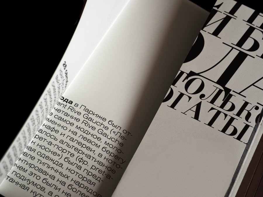 Aczidenz Grotesk Light Extended or Akzidenz Grotesk Medium Extended Didon was chosen for the rest of the text because it resembles the classic «moded» fonts used on the cover of fashion magazines — Vogue or Harper’s Bazaar.