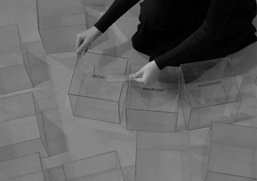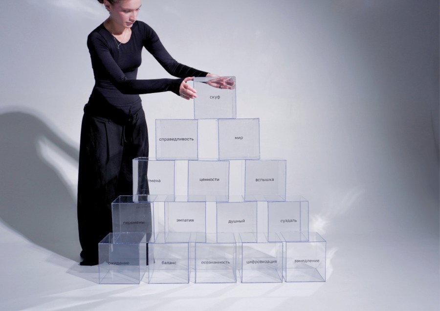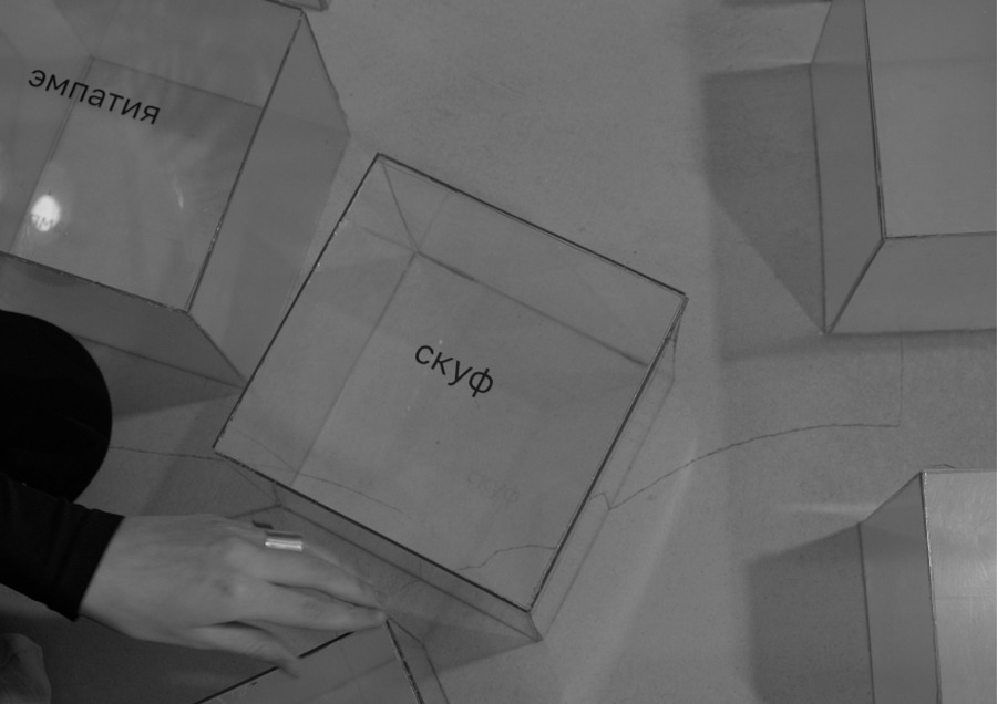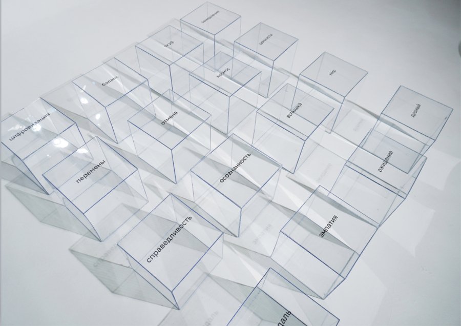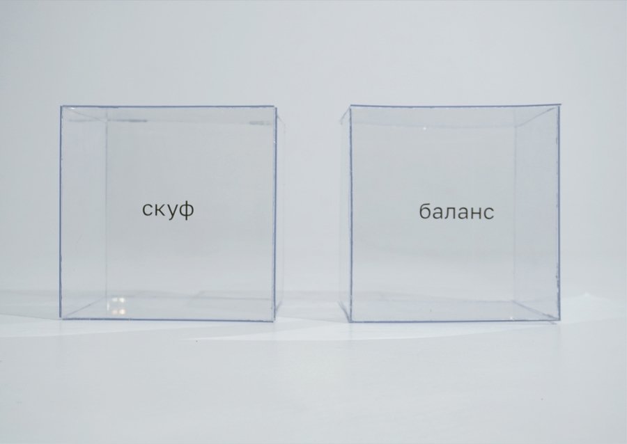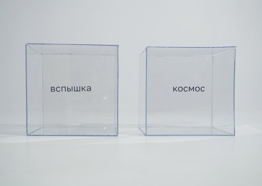 На прозрачный пластиковый куб я помещаю случайно выбранное слово из списка «Топ — 50 слов — предендентов на звание слово года».