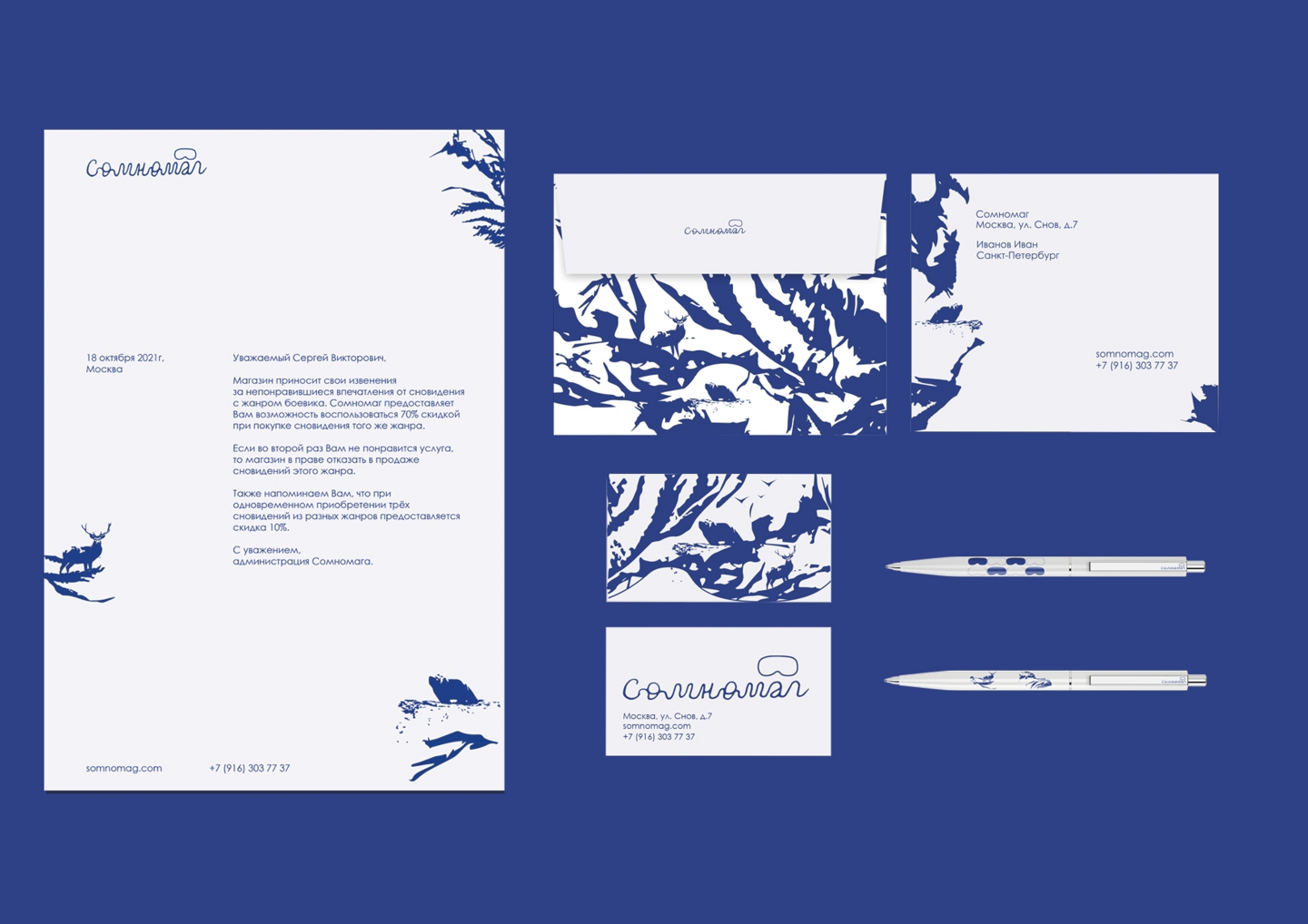 Логотип, цветовая палитра и шрифтовое сочетание. Промт для логотипа: minimalistic typography logo for dream store, Dream Shop «Somnomag» offers a unique opportunity to use your sleep time productively