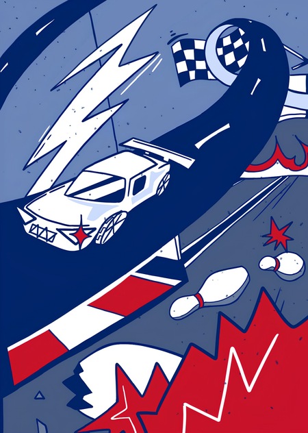 Иллюстрации для бренда Pabst Blue Ribbon Beer. Любимые игры и рёв мотора — лучшая комбинация для отличных выходных, чтобы ощутить, как на большой скорости незабываемые впечатления мчатся в твою жизнь.