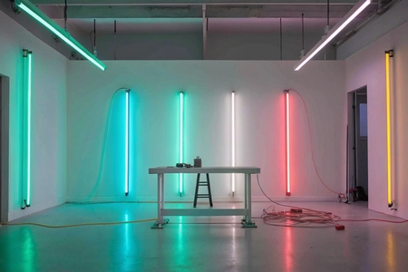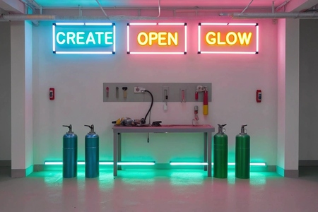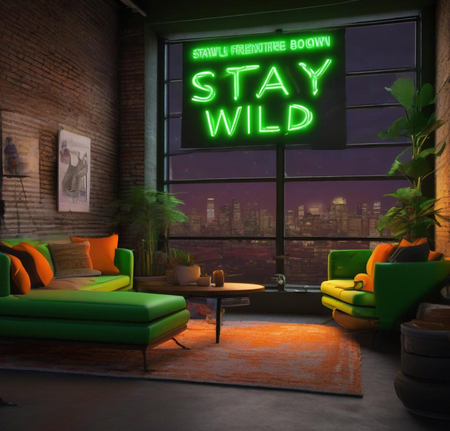 Пример промпта: A spacious, well-lit workshop with white walls and polished concrete floors. Several neon signs in vibrant colors—'Dream Big' in blue, 'On Air' in red, and 'Open 24/7' in yellow—are mounted on the walls and propped up on metal worktables. Bright LED ceiling lights illuminate the room, while the neon signs glow intensely, contrasting with the clean, industrial environment. Tools like glass tubing, gas canisters, and pliers are neatly arranged on the workstations.