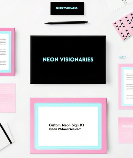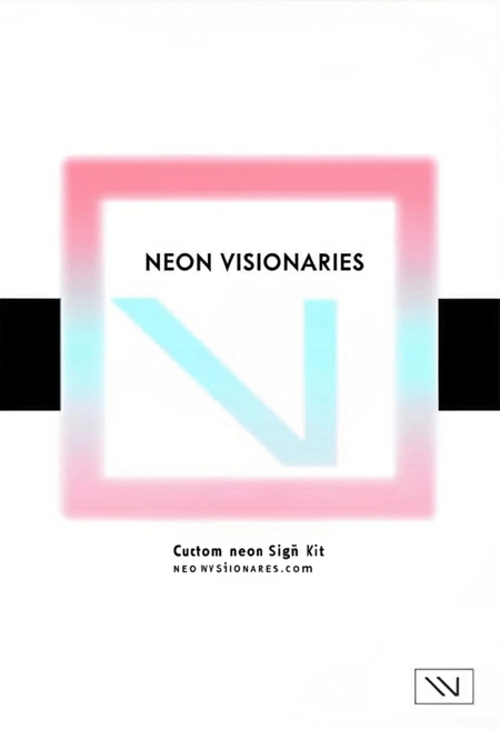 Design a minimalistic advertising poster for a neon sign company. The poster features a clean white background with a glowing, colorful neon sign in the center, shaped like a simple logo or abstract design. Below the neon graphic, include a sleek sans-serif tagline in small text, such as 'Light Up Your World, ' in a subtle gray tone. The company name, 'Neon Visionaries' is displayed at the bottom in bold black font, with a tiny, simple website URL beneath it: 'neonvisionaries.com' The focus is on the vibrant neon glow contrasting with the stark white background, creating an elegant and modern aesthetic.