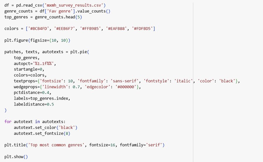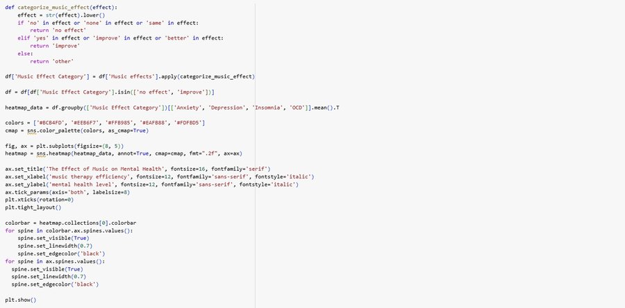 В своем анализе я использовала набор данных под названием «Результаты опроса о музыке и психическом здоровье», в котором респонденты поделились ответами насчет музыкальных предпочтений, деятельности и своем ментальном здоровье. Исследование ставит перед собой цель подтверждения того факта, что музыка является многогранной, индивидуальной для каждого человека терапией, способной улучшить моральное состояние.