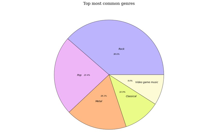 Далее был проведен анализ данных по наиболее популярным музыкальным жанрам и выяснилось, что первое место занял энергичный рок, а завершили топ саундтреки из видеоигр. Последние не так распространены из-за более узкой направленности, отошедшей от сугубо музыкальной среды, но она способна дарить человеку приятные воспоминания о сюжетах пройденных игр, предоставляющие терапевтический эффект.
