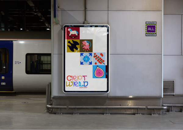 Promt: Name: Carpet World Description: Project of square mini-carpets that can be assembled together. Each carpet is unique. Suitable for both children and will fit into the design of any interior. Logo: