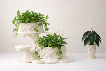 На данном этапе коллекция бренда включает в себя 5 продуктов — 3 разных кашпо, подставку для цветов и лейку