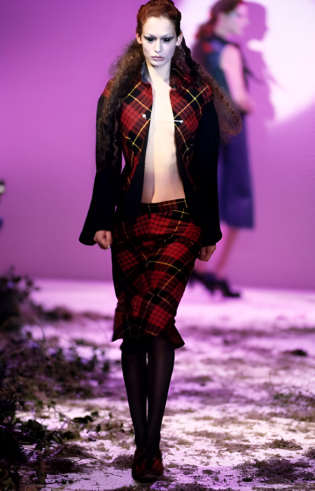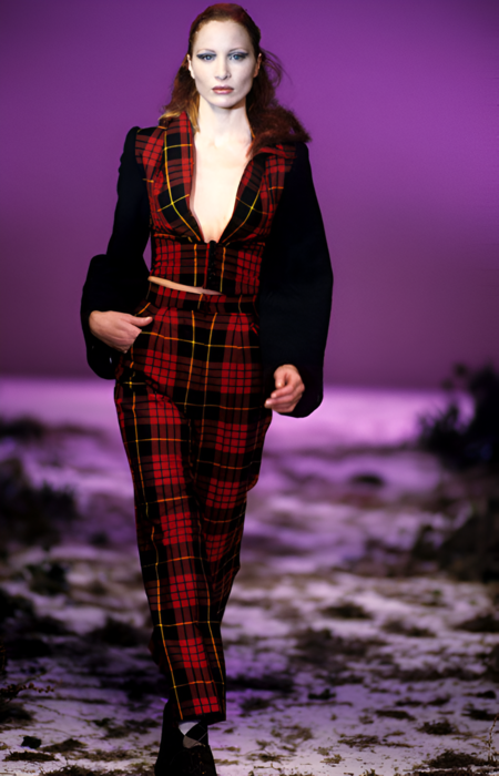 Его коллекции были насыщены шотландской символикой, тартанами, темами борьбы и идентичности — как, например, в знаменитом показе Highland Rape 1995 года.