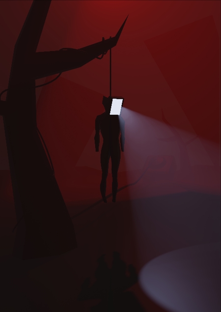 Рефлексия противостояния цифровых художников и нейросетей, целью которой является передача игроку ощущения мании преследования.
